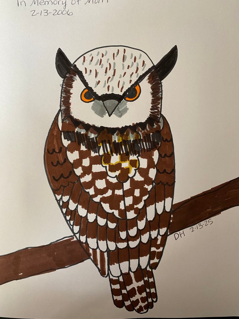 Today in her memory I drew an owl because they were her favorite. I’m no artist but I tried.